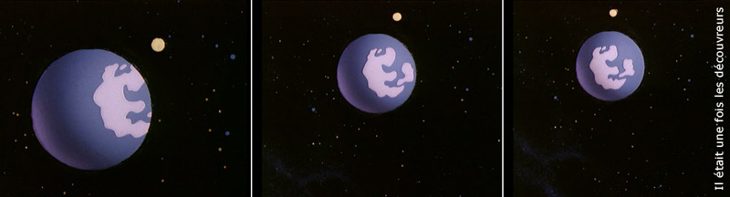 Même un dessin animé scientifique comme Il était une fois... montre des aberrations. Notez comme la lune est toute petite et proche de la Terre. Cette dernière tourne aussi à une vitesse épatante. Et les continents, j'en parle pas :)